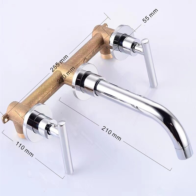 Bathroom Sink Mixer Faucet Wall Mounted, 2 Handle 3 Hole Wash Baxin Brass Taps, Rough in Valve Washroom Basin Tap 6