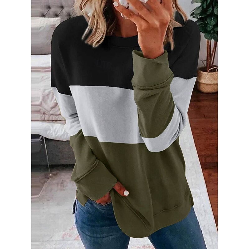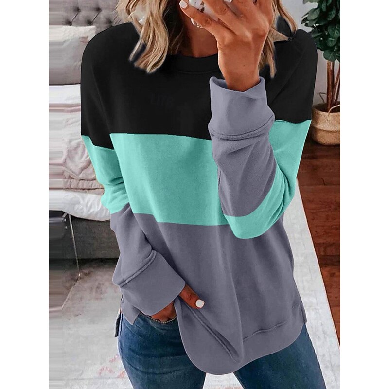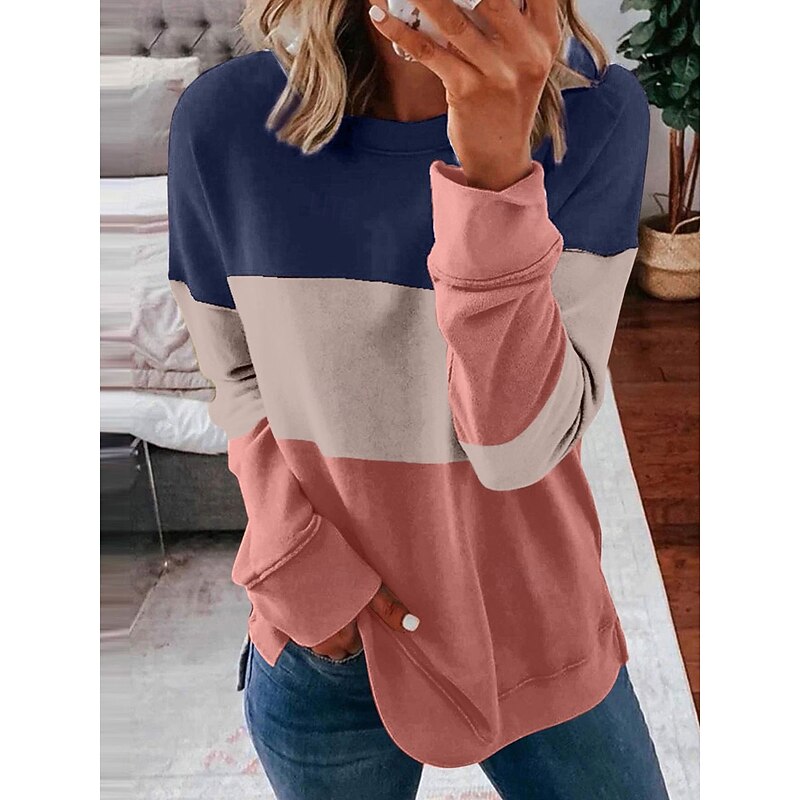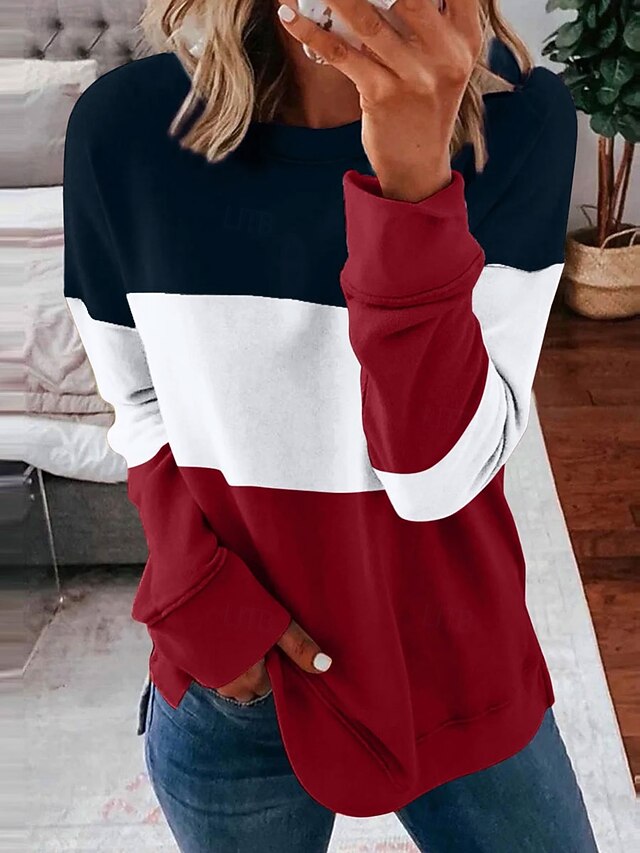 More information about Women's Pullover Sweatshirt Graphic Striped Casual Long Sleeve Crew Neck Round Neck Regular Tops Street Casual Holiday Print Pink Wine Blue Purple Orange Spring Fall Winter