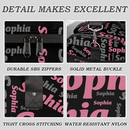TropicalLife Personalized Duffel Bag Custom Name Sport Gym Bag Duffle Dance Bag Weekender Bags for Women Black Pink Gray 5