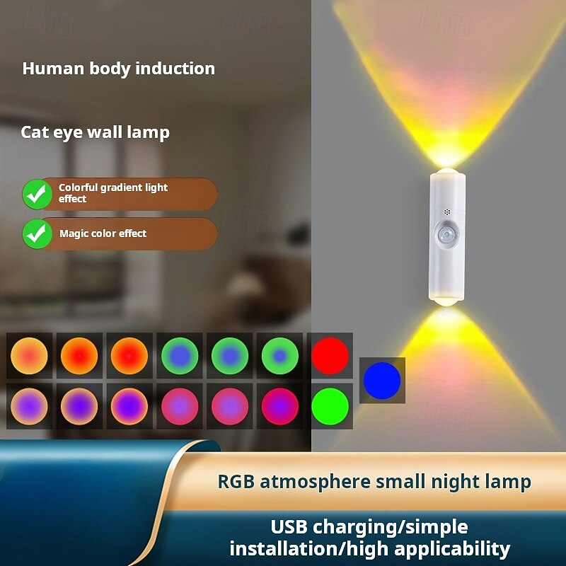 1 Pc Led Charging Puck Lights Spotlight, Sensor  Night Light, Usb Charging, Three Color Dimming, Magnetic Installation, No Need For Wiring Or Punching Hole 12