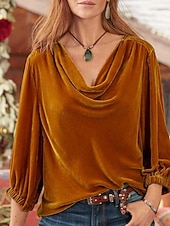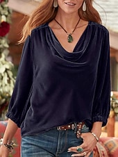 More information about Women's Blouse Solid Color Stylish Casual 3/4 Length Sleeve Cowl Neck Regular Tops Daily Purple Fuchsia Orange Spring Fall Winter