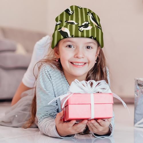 Cute Penguin and Green Stripe Pattern Kids Beanie Hat for for Girls Boys Children Cap Winter Knitted Chemo Cancer Headwear Accessories Gifts Decoration 7