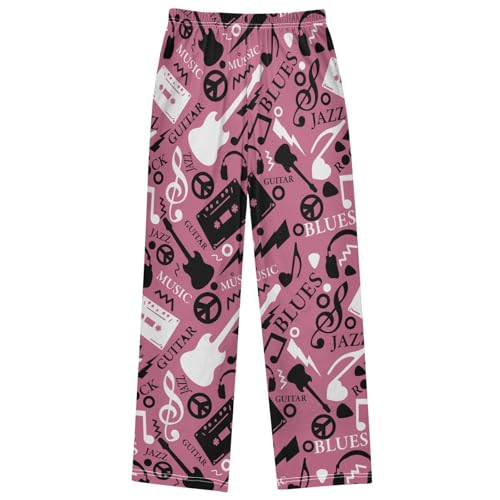 Boy's Pants Pink Music Guitar Pattern Jogger Pants Elastic Waist Long Bottoms Trousers with Pockets 6-14 Years 6