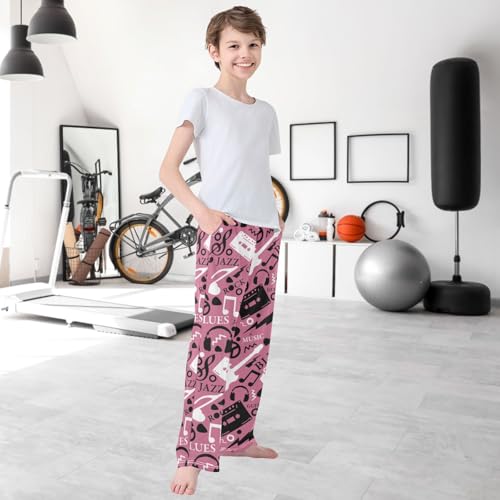 Boy's Pants Pink Music Guitar Pattern Jogger Pants Elastic Waist Long Bottoms Trousers with Pockets 6-14 Years 4