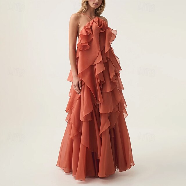 $109.99 - A-Line Evening Gown Elegant Dress Formal Evening Party Floor Length Sleeveless Halter Neck Organza with Flowers and Ruffles 2025. Shop for cheap Casual / Daytime Wedding online? Buy at lightinthebox.com on sale today!