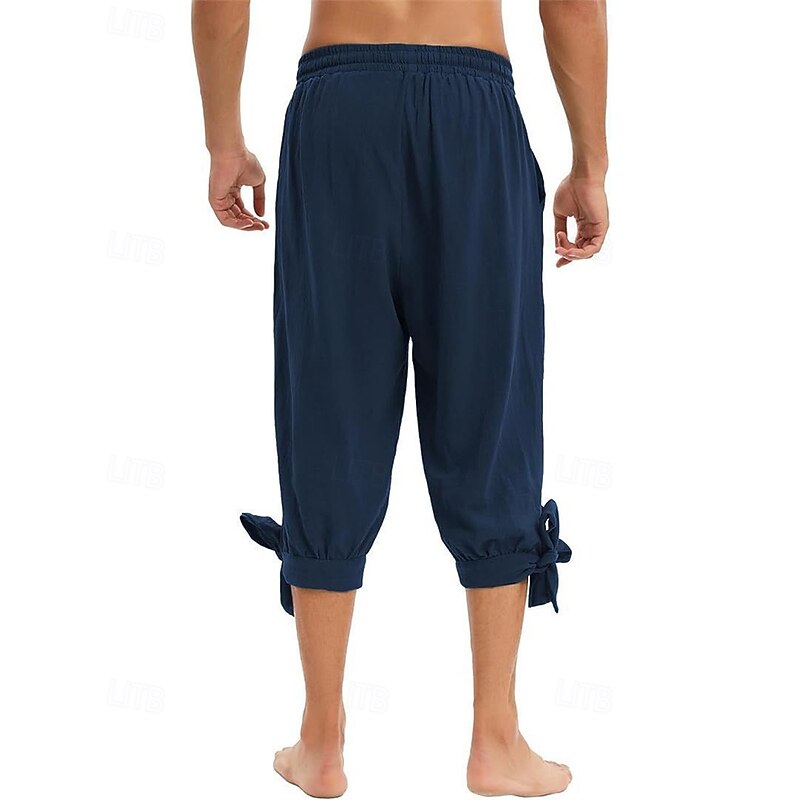More information about Men's Shorts Cotton Linen Shorts Summer Shorts Beach Shorts Pocket Drawstring Elastic Waist Plain Comfort Breathable Knee Length Vacation Holiday Beach Hawaiian Boho Black White Micro-elastic