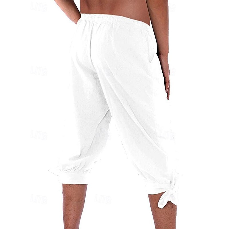 Men's Shorts Cotton Linen Shorts Summer Shorts Beach Shorts Pocket Drawstring Elastic Waist Plain Comfort Breathable Knee Length Vacation Holiday Beach Hawaiian Boho Black White Micro-elastic 12
