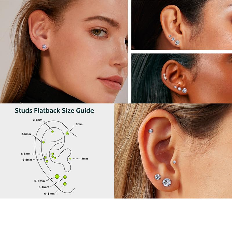 6 Pairs Stud Earrings for Women,Hypoallergenic Stainless Steel Earrings,3-8mm Cubic Zirconia Earrings Studs 4