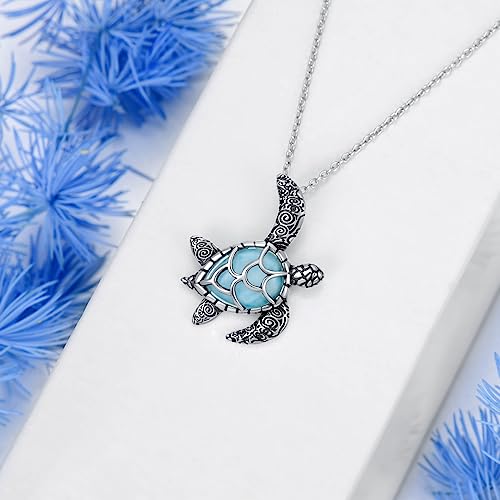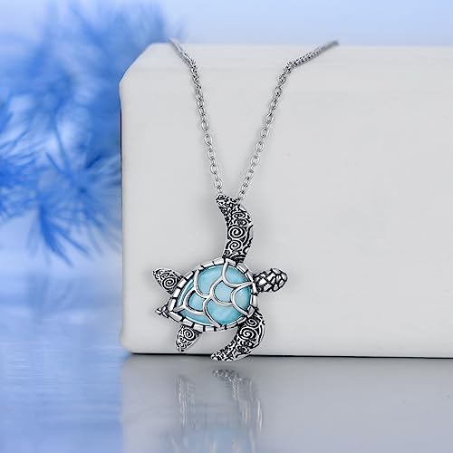 • 💕Sea Turtle Necklace MATERIAL💕: The Sea Turtle Pendant Necklace is made of S925 sterling silver, high polish finish, lead-free & nickle-free, Hypoallergenic no harm to health. It is an appropriate for sensitive skin. The light blue Larimar dotted in the center is dazzling. You'll love this beautiful turtle jewelry. Turtle jewelry for women