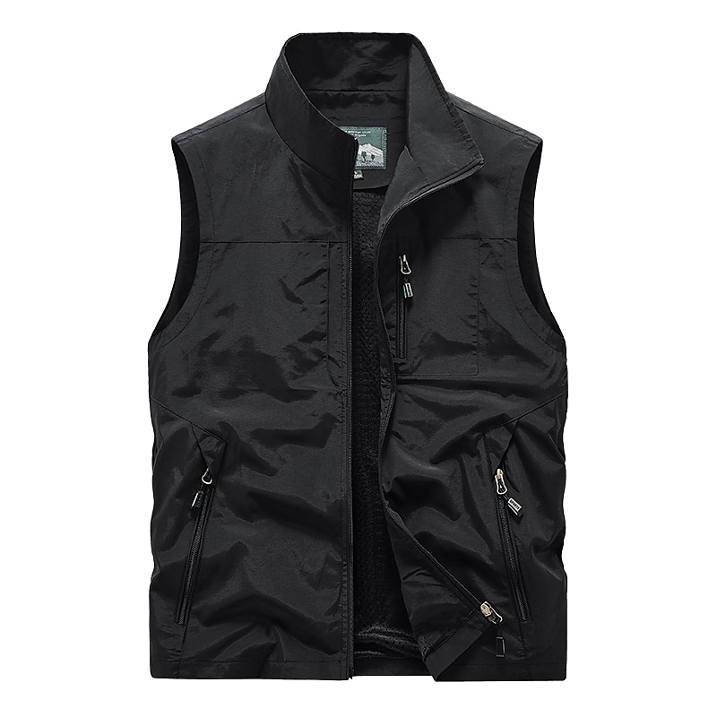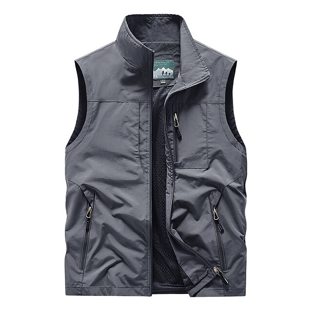 More information about Men's Vest Daily Wear Modern Contemporary Spring & Summer Basic Elastane Outdoor Solid / Plain Color Zipper Standing Collar Relaxed Fit Wine Grey Black khaki Vest