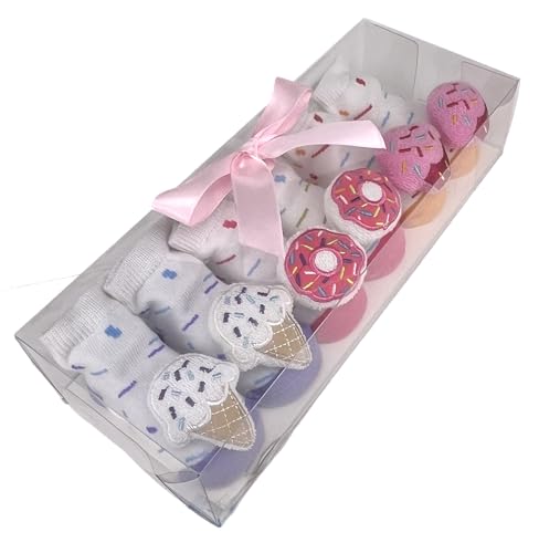 PUPPET Baby Girl Rattle Socks for 0-6 Months Dessert Themed Set Ice Cream Donut Cupcake Infant Adorable Socks Series 1