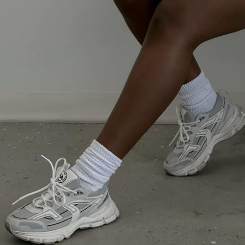 Scrunch Slouchy Crew Socks For Women Cotton Cushioned Athletic Mid Calf Rib Tube 80s Retro Socks Multipairs 4