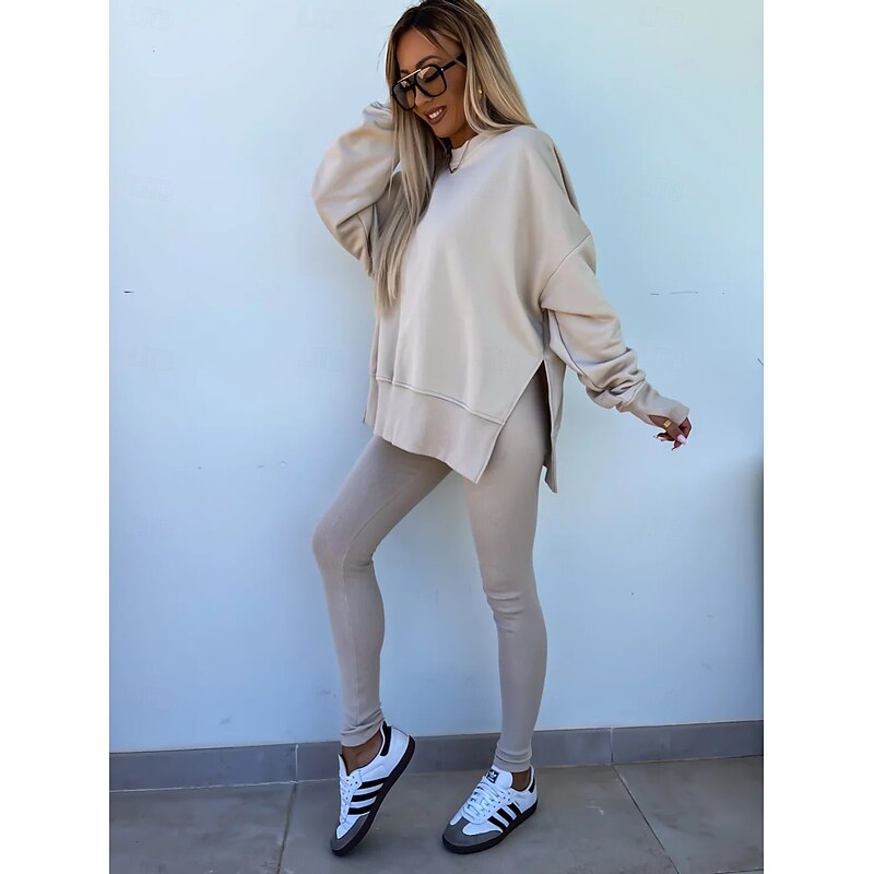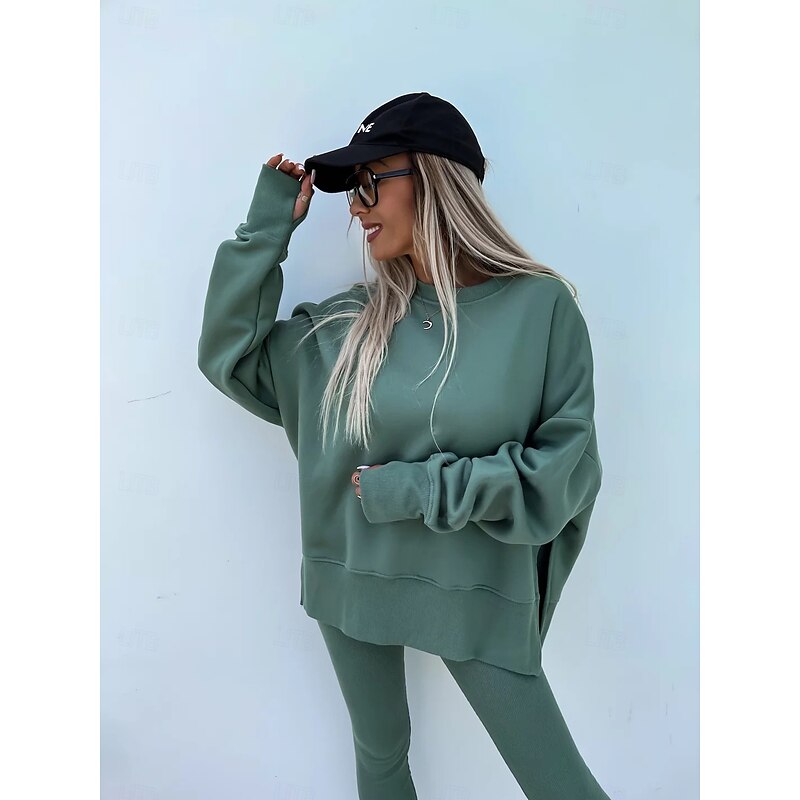 Highlights [Fabric & Fit:] This comfy ensemble is crafted from a fleece and fleece-lined fabric, offering warmth and comfort across the seasons of spring, fall, and winter. The hoodie boasts a loose fit that enhances both comfort and style, featuring a solid color pattern for a versatile look. [Design Highlights:] The piece includes a combination of a hoodie, sweatshirt, tracksuit, and bolero top with long sleeves. Its relaxed fit and dropped shoulder design provide a laid-back yet trendy aesthetic. Paired with the top are matching sweatpants made for ease of movement and style. [Occasions:] Perfect for casual outings, weekend errands, or staying cozy indoors. This outfit seamlessly fits into everyday life, offering a stylish streetwear vibe suitable for various activities. [Size Availability:] Available in sizes S, M, L, and XL. Designed to accommodate a range of body types, ensuring a comfortable fit for a diverse array of wearers. [Care Instructions:] The outfit is machine washable, ensuring easy maintenance and durability.