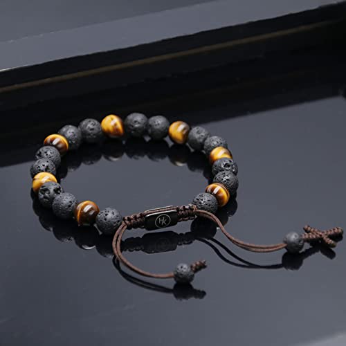 HASKARE Triple Protection Crystal Bracelets for Men, Premium Tiger Eye Bracelet Lava Healing Bracelet Fathers Day Gift, Handmade Cross Stress Relief Beads Bracelets Mens Jewelry Gift for Dad Grandpa 1