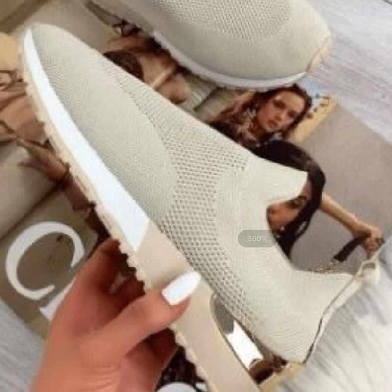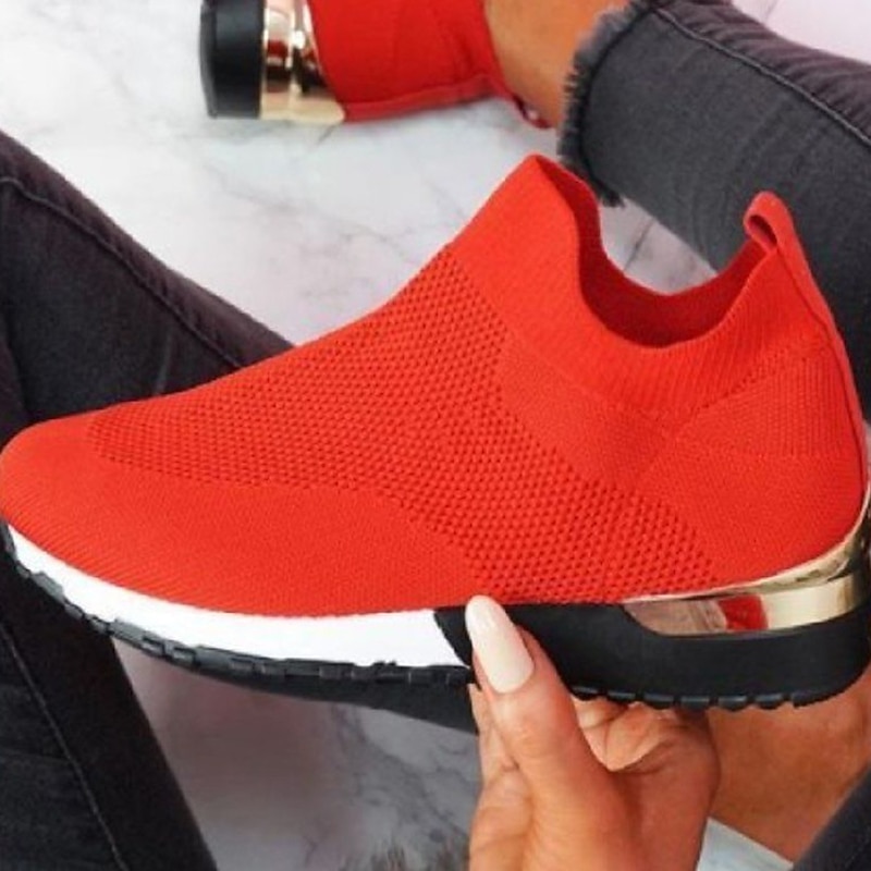 Highlights [Fabric] : Constructed with a breathable Flyknit fabric, these women's trainers offer superior flexibility and comfort. The lightweight and airy material ensures that your feet stay cool and dry, even during prolonged wear. [Silhouette] : The shoe showcases a modern wedge heel design, providing both style and a subtle height boost. With the actual heel height ranging from 1 to 2 inches, it strikes the perfect balance between sporty and casual. [Design Highlights] : Featuring a minimalist solid color design, these shoes include a striking metallic accent at the heel, adding elegance to their athletic style. The round toe shape and slip-on loafer closure ensure a snug fit with easy on and off convenience. [Occasions] : Ideal for daily wear and outdoor activities, these sneakers are versatile enough for running, walking, or simply enjoying a casual outing. Whether you're heading out for a spring or fall adventure, these trainers promise to complement a wide array of wardrobes. [Size Recommendation] : Available in an extensive range of sizes from EU 36 to EU 43, these shoes cater to a variety of foot shapes and sizes. This range makes them accessible for many, while their stylish design keeps them trendy in 2024.