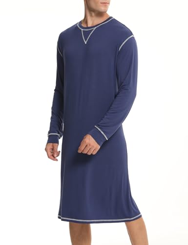 • Relaxed Fit: Generously cut for a relaxed fit from modal fabric, this mid-length long sleeve nightshirt features contrasting sitches on the neck and shoulders; Simple, pocket-free design, long sleeve crewneck style,perfect for cosy evenings and comfortable sleep
