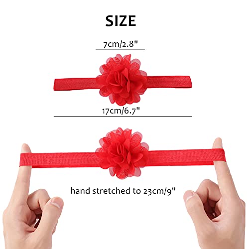 • 【DELICATE DESIGN】--All headbands and feet flowers are handcrafted in the clean and smoke-free environment. Each chiffon flower is handmade carefully to make it vividly bloomy. Artificial pearl & rhinestone ornament makes flower more delicate and beautiful. They will make your little girls look more adorable and eye-catching.