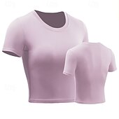 More information about Women's Running T-Shirt Crop Top Short Sleeve Tee Tshirt Casual Athleisure Solid Colored Quick Dry Soft Breathable Gym Workout Walking Jogging Sportswear Activewear Black White Pink