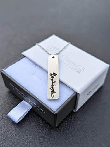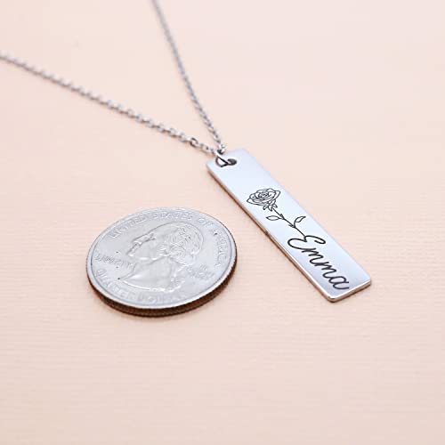 Personalized Flower Name Bar Pendant Necklace Custom Engraved Jewelry Gift for Her Couples Girlfriend Delicate Handcrafted Accessory Mother Daughter Ideal for Wedding Bridesmaid Gift Idea 1