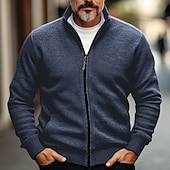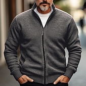 More information about Men's Cardigan Sweater Zip Sweater Chunky Cardigan Ribbed Knit Cropped Pocket Knitted Color Block Stand Collar Warm Ups Modern Contemporary Casual Daily Wear Clothing Apparel Fall Winter Black Red S