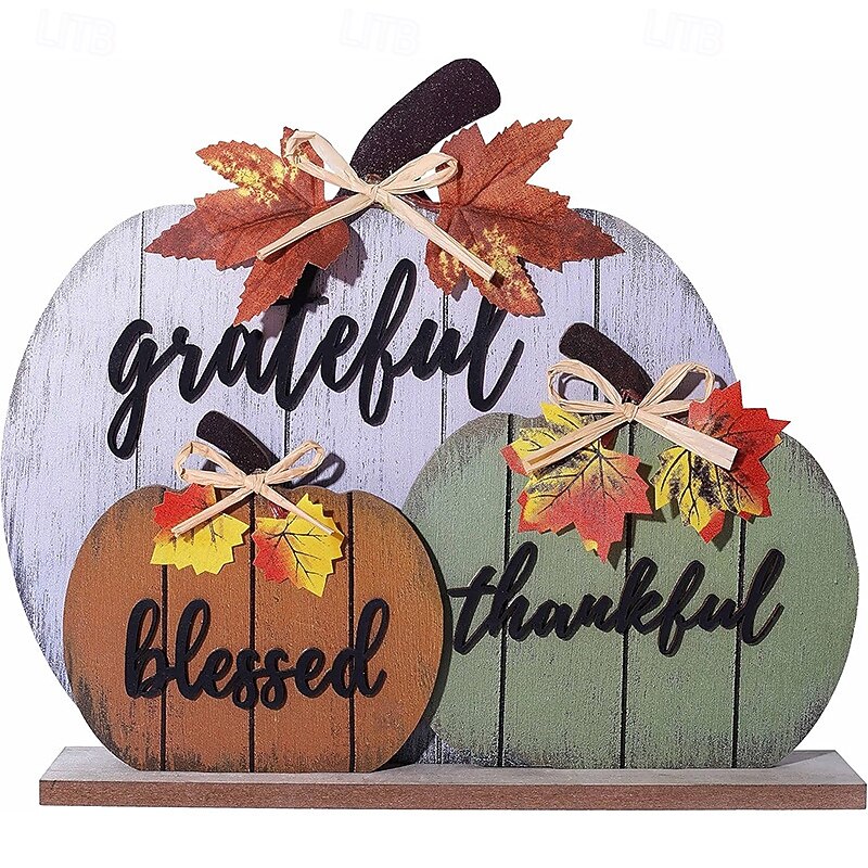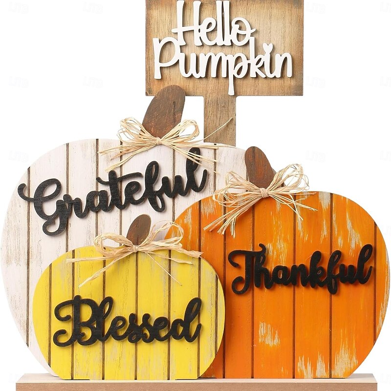 HOT ! Fall Pumpkin Wooden Table Decor, Thanksgiving Rustic Fall Blessing Sign for Farmhouse, Autumn Harvest Thankful Home Decoration Craft
