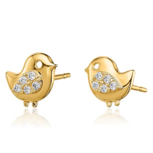 14K Solid Yellow Gold Bird Cubic Zirconia CZ Stud Earrings 1