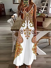 HOT ! Women's Maxi Dress Casual Dress A Line Dress Slip Dress Vacation Vintage Ethnic Daily Regular Fit Paisley Sleeveless V Neck Yellow Summer Spring Fall
