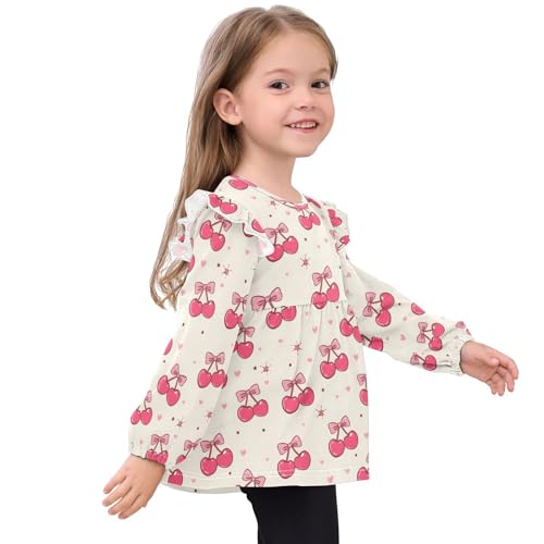 Bows Cherry Cute Girls Shirts Cotton Long Sleeve Ruffle Toddler Tee Tops 2