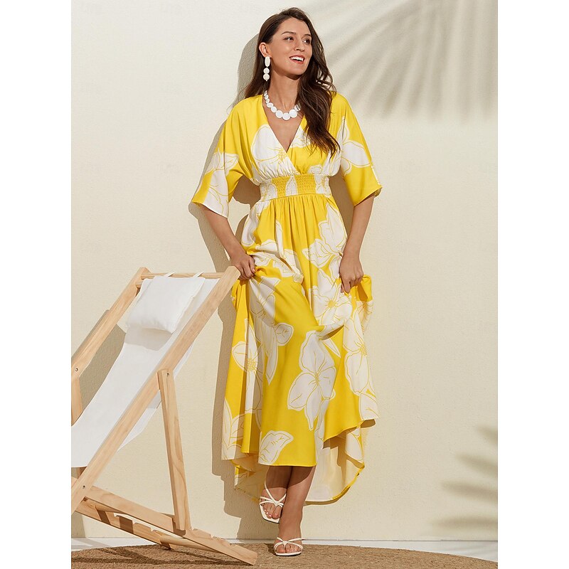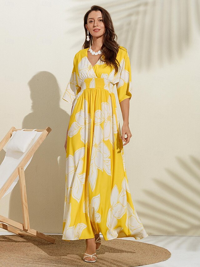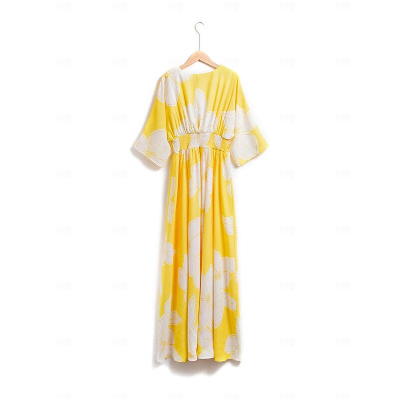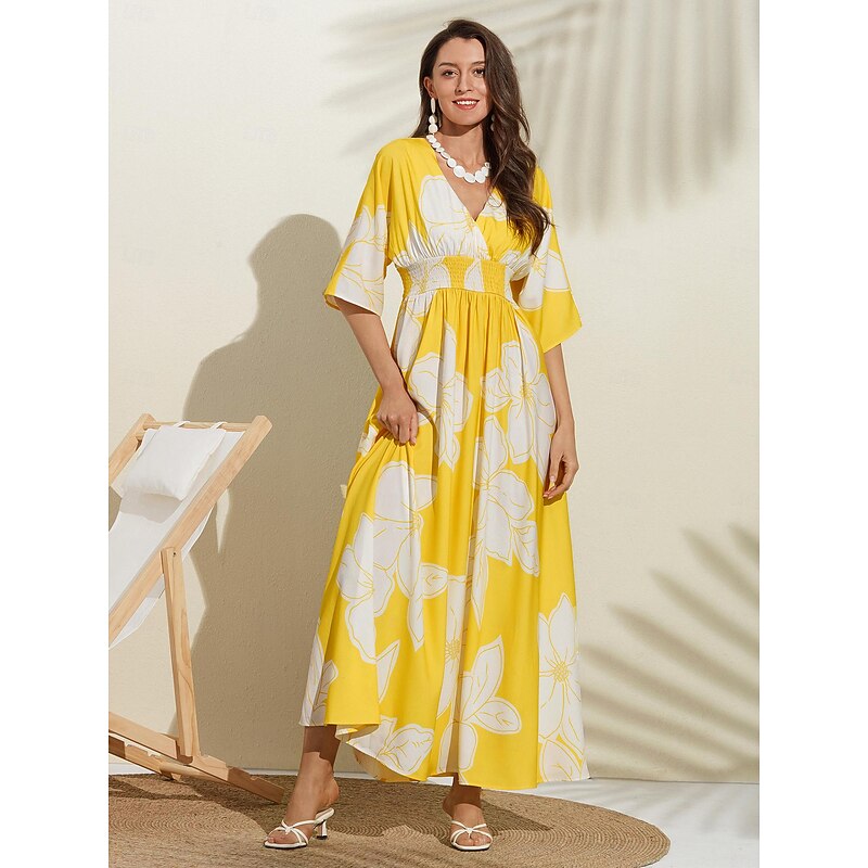 More information about Satin Yellow Flower Print Corset Beach Dress