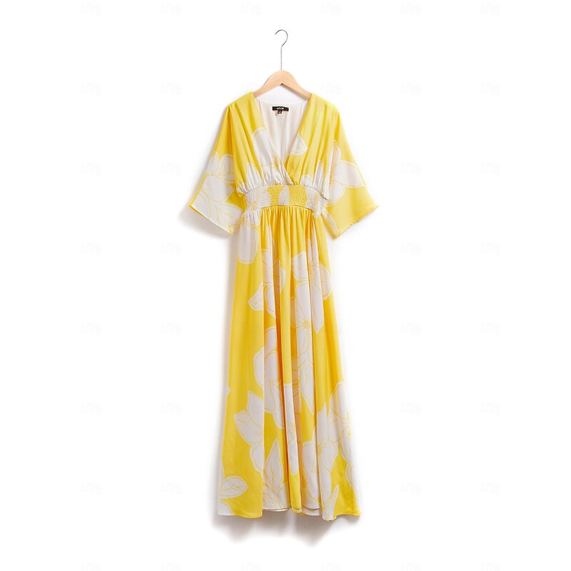 HOT ! Satin Yellow Flower Print Corset Beach Dress