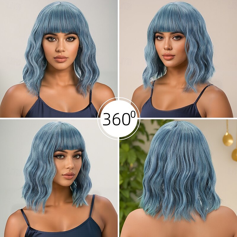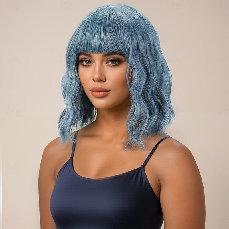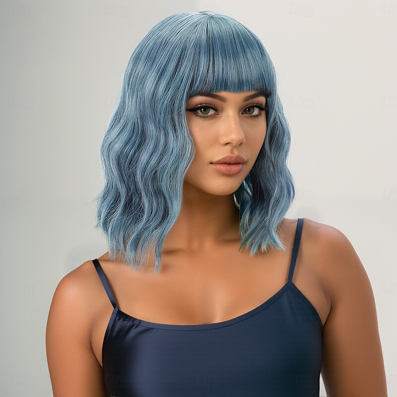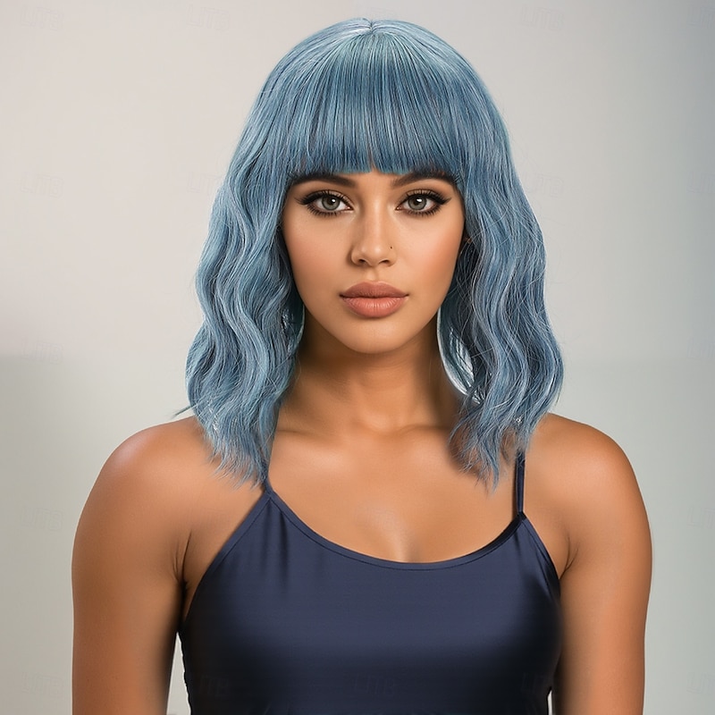 $24.99 - Synthetic Wig Wavy Water Wave Layered Haircut Neat Bang Machine Made Wig 12 inch A1 Synthetic Hair Women's Classic Adorable Comfortable Blue 2025. Shop for cheap Synthetic Trendy Wigs online? Buy at lightinthebox.com on sale today!