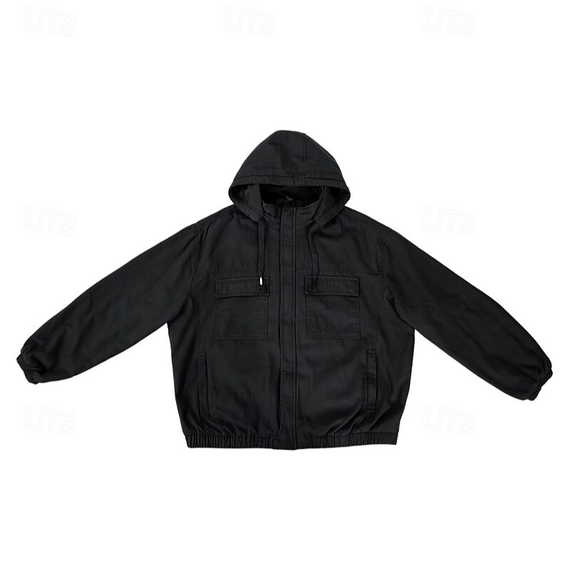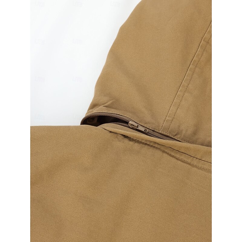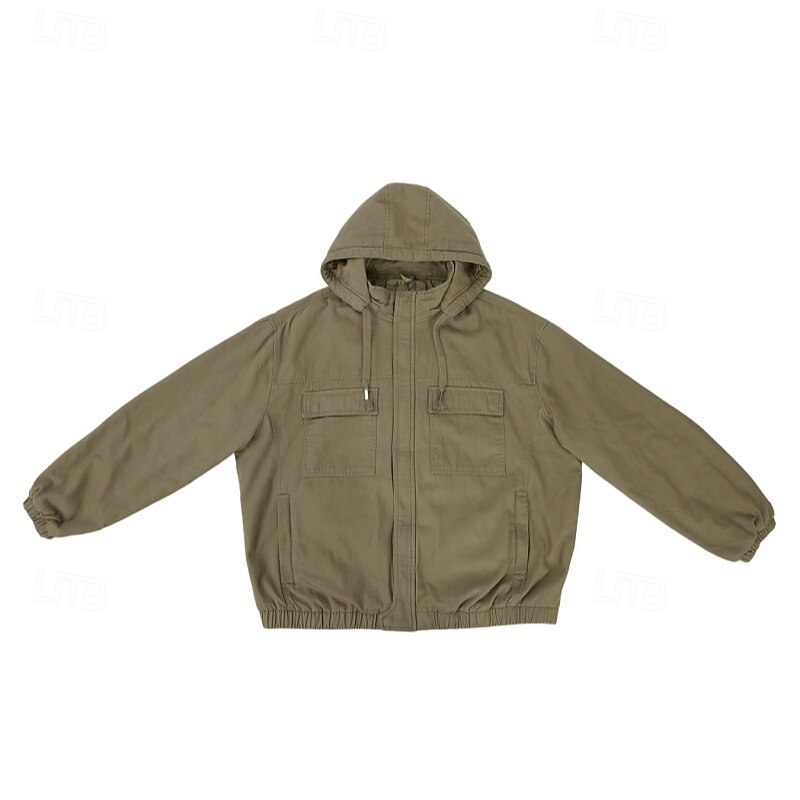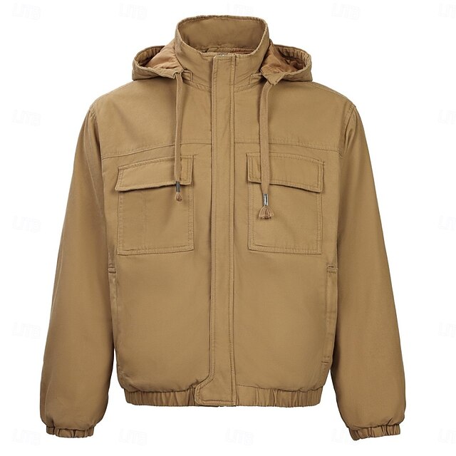 More information about Men's Trucker Jacket Winter Coat Work Jacket Hoodied Jacket Work Daily Portable Pocket Hooded Spring Fall Winter Solid Color Active Vintage Regular Black Khaki Army Green Beige Jacket