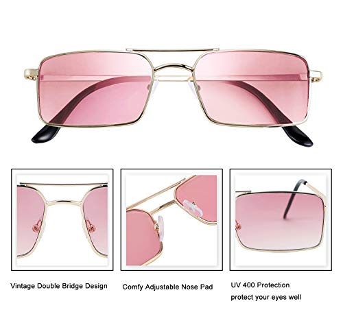 • 1.FEISEDY Vintage Design -- Double Bridge with Metal Square Rectangle Small Frame and Colorful Lenses, showing the vintage and antique flavor,Vintage but Fashion as well!