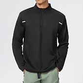 More information about Men's Fleece Sweatshirt Quarter Zip Sweatshirt Long Sleeve Stand Collar Top Outdoor Thermal Warm Winter Polyester Black Fishing Tennis Running