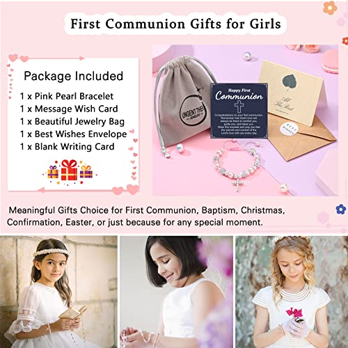 • 【 First Communion Gifts for Girls】 -- The sparkly & lovely pearl bracelet comes with a card and a blank greeting card in a little jewelry bag. You can write some special wishes. A perfect present for granddaughter, goddaughter, and niece on the First Communion, Baptism, Christmas, Confirmation, Easter, or just because for any special moment.