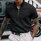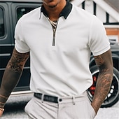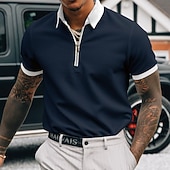 More information about Men's Polo Shirt Golf Shirt Going out Gym Turndown Quarter Zip Short Sleeve Sportswear Casual Solid Color Sports Patchwork Zipper Spring & Summer Slim Black-White Black White Navy Blue Blue / White
