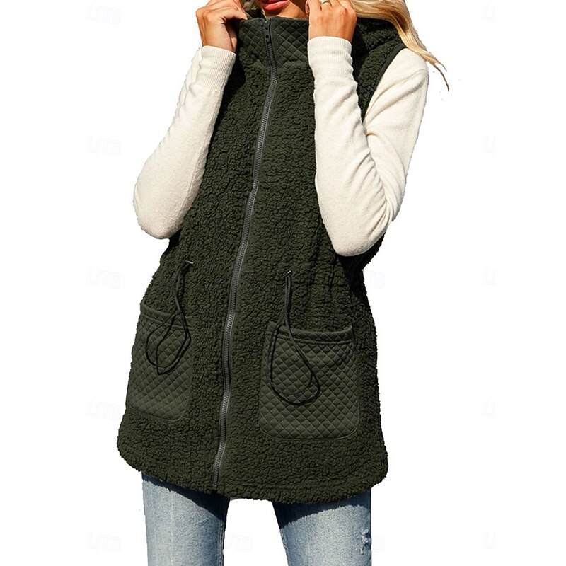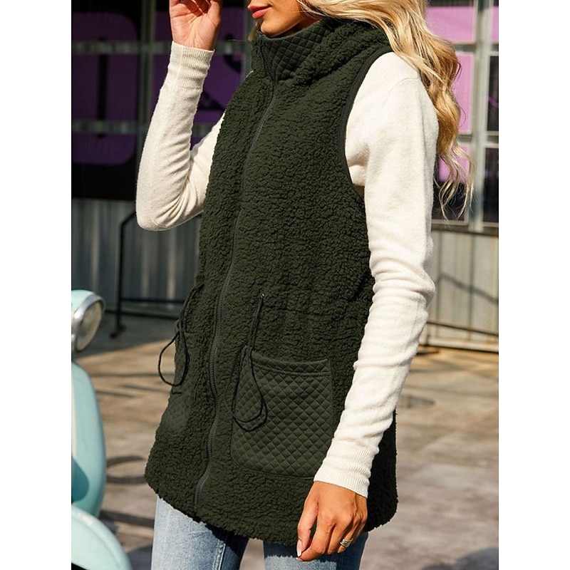 More information about Women's Fleece Vest Teddy Coat Warm Breathable Zipper Pocket Fleece Lined Casual Plain Vacation Street Daily Wear Going out Zipper Regular Hoodie Regular Fit Sleeveless Outerwear Army Green Fall