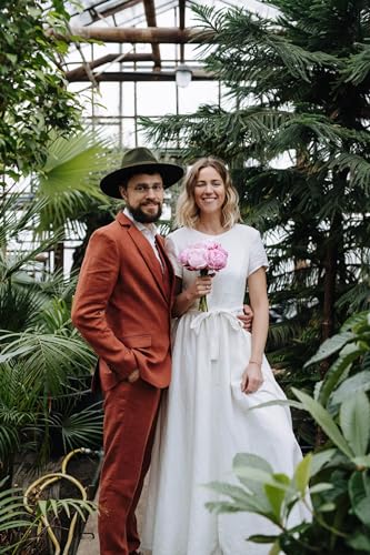 • Linen Wedding Suits. Our fabric is Linen and Viscose, soft and smooth, light and breathable, perfect for the hot season in summer. When you get it, you should iron it first. You'll be interested in it.
