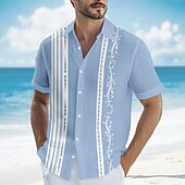 More information about Men's Geometric Striped Shirt Guayabera Shirt Button Up Shirt Short Sleeve Fashion Casual Vacation Dailywear Beach Wear Summer Spring Turndown Button Up 3D Print Linen Like Shirt Yellow Blue Green
