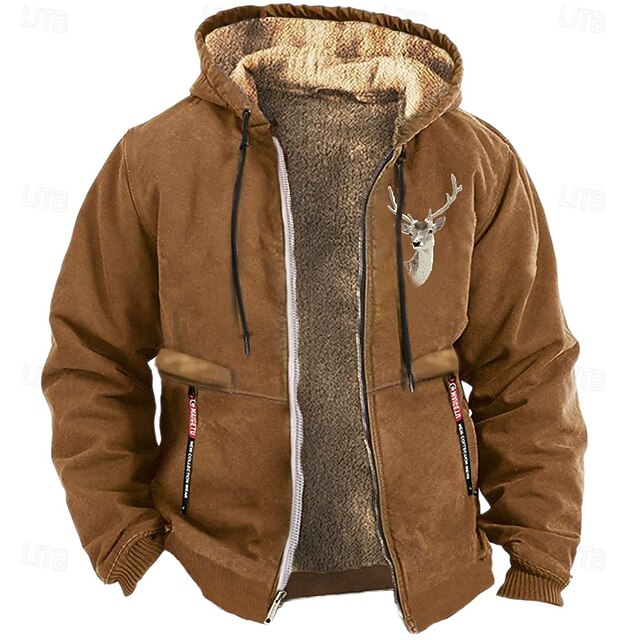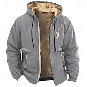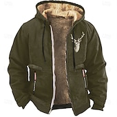 Highlights [Fabric and Fit] : Crafted from high-quality polyester, this Men's Graphic Prints Cowboy Fleece Sweatshirt provides both warmth and comfort. The fleece-lined interior ensures insulation during colder months, while the stretchy material allows for a comfortable, regular fit. [Design Highlights] : Featuring a practical hoodie with adjustable drawstrings, this sweatshirt boasts a vintage western style. The detailed embroidered deer head graphic print on the chest adds a unique, rustic touch. Ribbed cuffs and hem offer a snug fit to help retain warmth, and the full-length zipper ensures easy wear and removal. [Occasions] : This versatile sweatshirt is ideal for various occasions, such as vacations, outdoor activities like hunting, streetwear, or a casual day out. It's designed to complement your fall and winter wardrobe, blending style and functionality effortlessly. [Size Information] : Available in a wide range of sizes, from S to XXXL, catering to different body types for a perfect fit. [Additional Features] : The sweatshirt includes secure zippered pockets for carrying essentials, and it's easy to maintain with options for both wet and dry cleaning. This ensures it remains a staple in your wardrobe throughout the colder seasons.