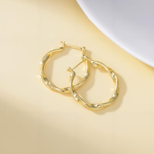 • 【Unique Twisted Wave Design】Elevate your jewelry collection with our 14k gold hoop earrings for women, featuring a captivating twisted wave pattern that catches and reflects light beautifully. The artful twist adds dimension and movement, creating a mesmerizing effect with every turn. These gold hoops for women blend modern elegance with enduring appeal, making them perfect for both casual and formal occasions.