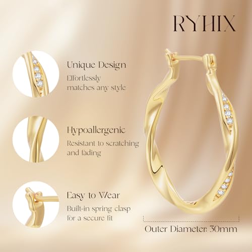 Hoop Earrings 14K Gold Earrings for Women Thick Large Diamond Hoops Earring Twisted Wave Gold Huggie Earring 30/40MM 6