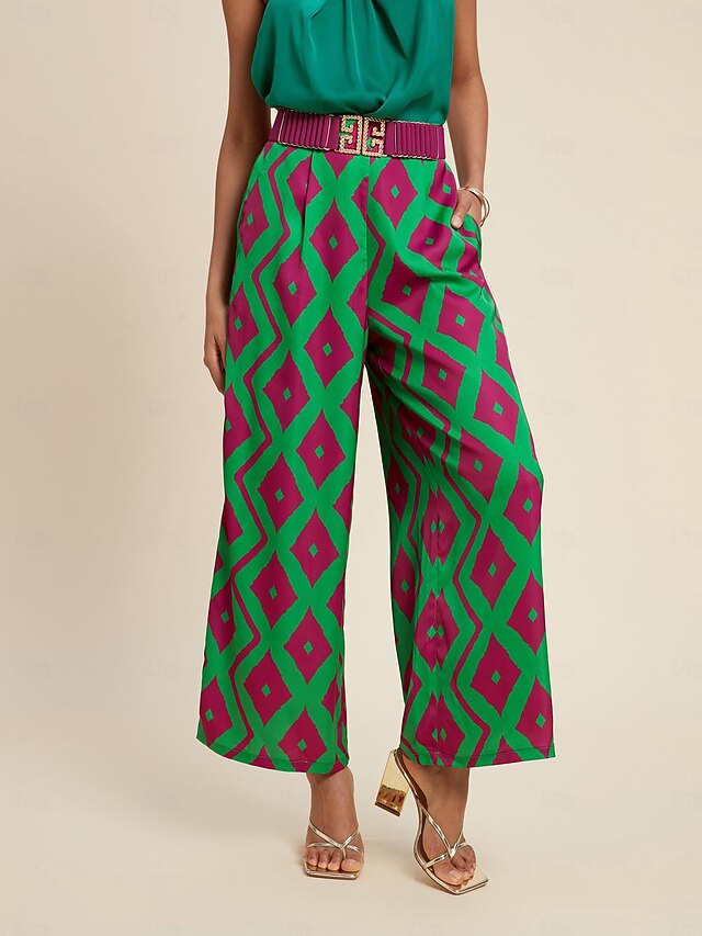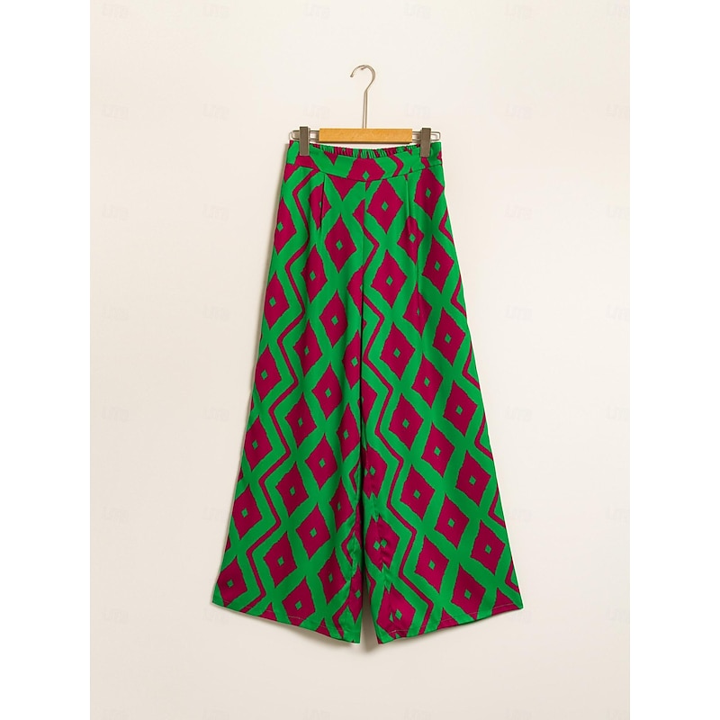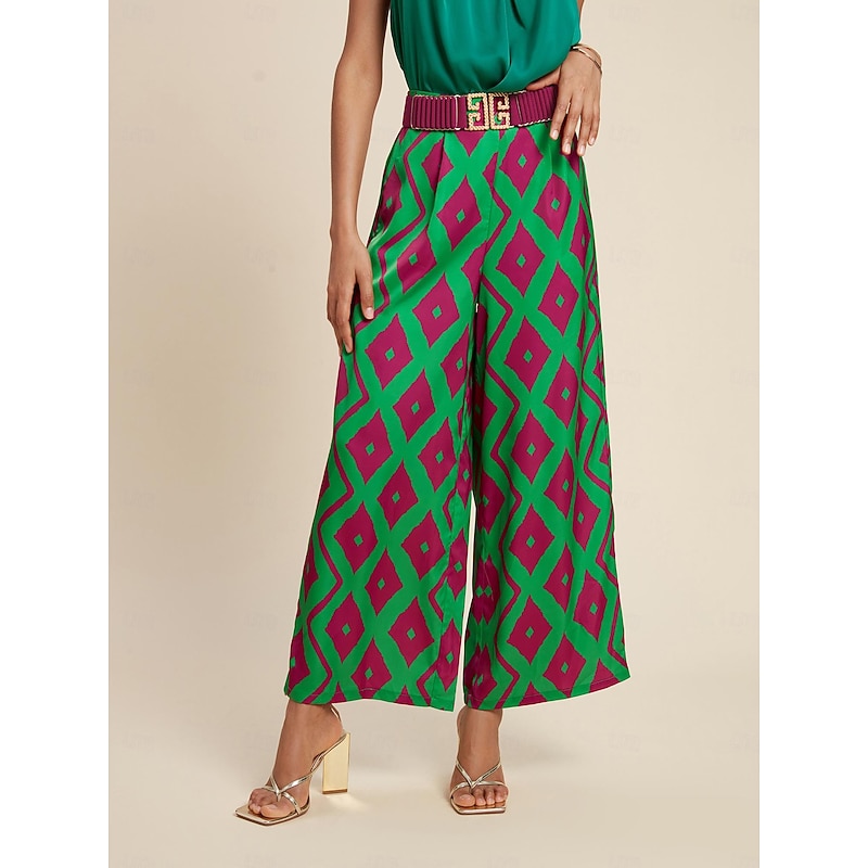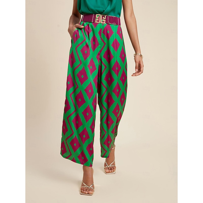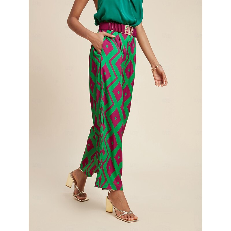 Women's Straight Long Satin Pocket Micro-elastic Pants Casual Daily Weekend Green Summer S M L 14