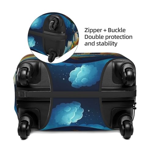 Cartoon Earth Print Travel Luggage Cover Elastic Baggage Protector For Men Women Fits 22-24 Inch Luggage 7