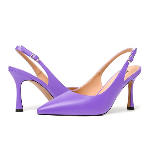 JUSTDANNI Womens Stylish Buckle Slingback Matte Evening Sexy Pointed Toe Stiletto High Heel Pumps Shoes 3.3 Inch 7