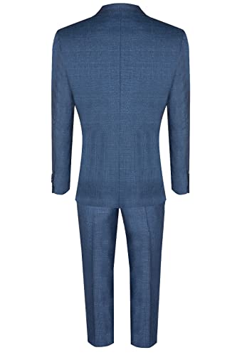 HOT ! Mens 3 Piece Blue Suit Prince of Wales Check Classic Light Tailored Fit Modern