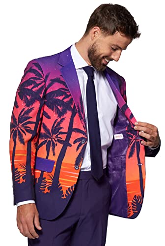 Opposuits Men's Suit - Summer Sunset Party Outfit - Slim Fit - Purple - Orange and Black - Includes Blazer, Pants and Tie 1