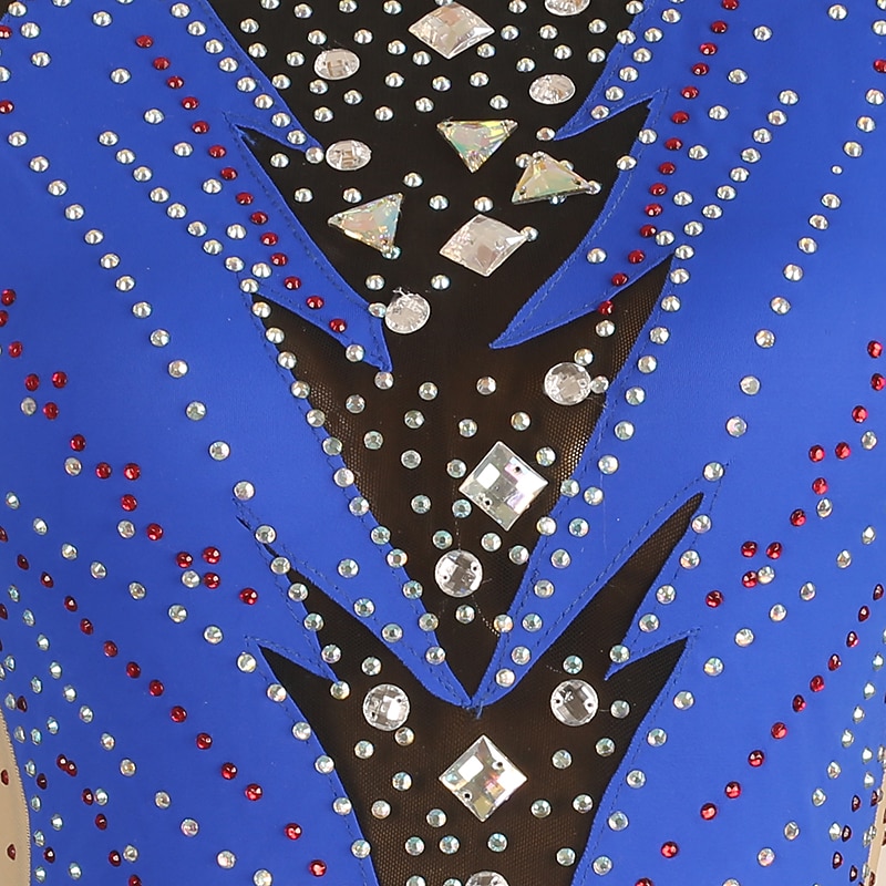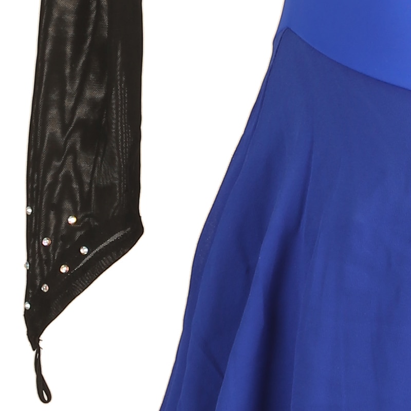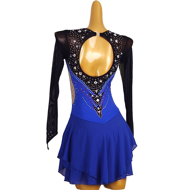 More information about Figure Skating Dress Women's Girls' Ice Skating Dress Royal Blue Patchwork Open Back Mesh Spandex High Elasticity Training Competition Skating Wear Classic Long Sleeve Ice Skating Figure Skating
