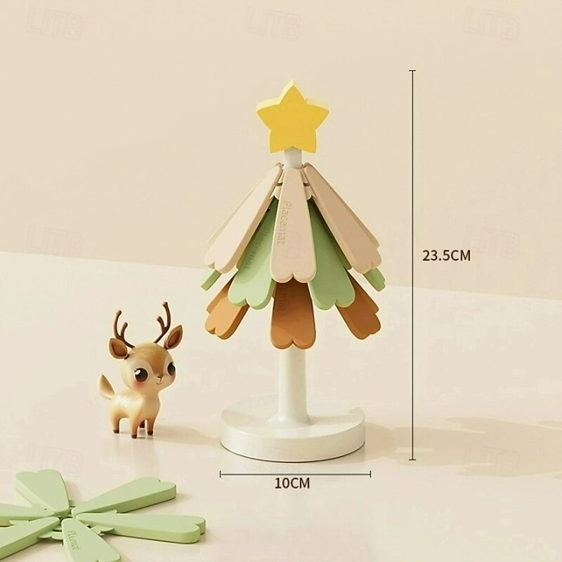 HOT ! Christmas Tree Heat-Resistant Placemat with 3/4 Coasters & Stand - Non-Slip Kitchen Coaster, Heatproof Table Mat for Dining, Pot Pad, Cup Holder, Space-Saving Holiday Table Decor