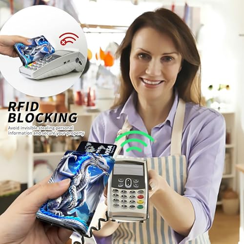 Blue Dragon Minimalist Wallet for Men, Pop Up Card Case Wallet for Women, PU Leather Automatic Credit Card Holder Metal Money Clip Wallet RFID Blocking Bifold Pocket Wallet 5